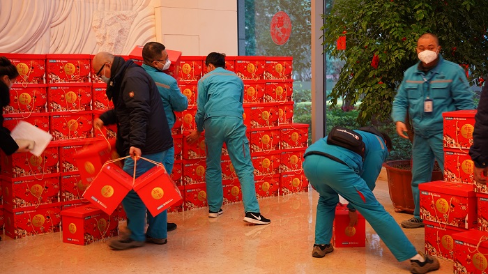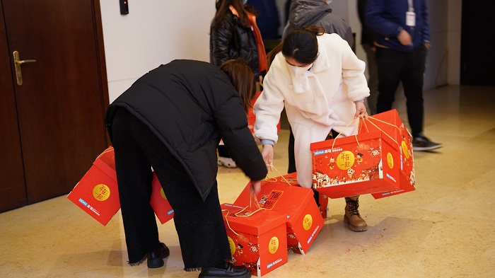 兔年將至,備年禮、囤年貨都是必不可少的儀式。一件件代表著公司關(guān)懷的年貨堆成一座座小山,承載了公司對(duì)每一位員工真摯的問候與祝福,紅色的包裝更為發(fā)年貨現(xiàn)場(chǎng)增添了喜慶、熱鬧的氛圍感。