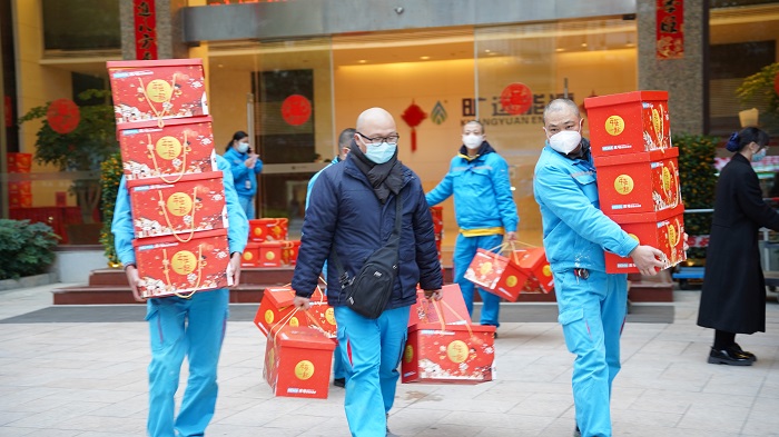 在所有年貨到位之后,各公司員工來到一樓大廳,滿懷激動(dòng)的心情領(lǐng)取年貨。“快快快,點(diǎn)一下?!薄澳銕兔Χ嗄脦讉€(gè),一起上去!”“這個(gè)不錯(cuò),我喜歡吃。”年貨發(fā)放現(xiàn)場(chǎng)氣氛熱烈,大家提著沉甸甸的年貨,臉上洋溢著笑容,新春佳節(jié)的喜悅已縈繞在公司內(nèi)外。