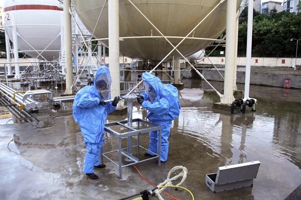 本次演練項目為: LPG1#儲罐底部出液管第一道法蘭墊片老化造成液化氣泄漏事故的應(yīng)急處置。主要流程為:模擬事故發(fā)生、報警、應(yīng)急啟動、人員疏散、安全警戒、消防噴淋驅(qū)散燃氣稀釋濃度、搶險堵漏及最終解除警戒等。在演練總指揮葉春總經(jīng)理的指揮下,所有參演人員嚴(yán)肅認真、有條不紊地推進各個步驟,歷時一個小時后,演練圓滿完成。