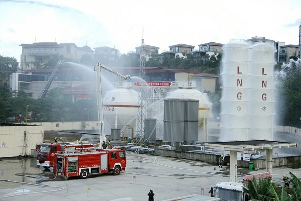 為進一步加強安全生產(chǎn)應(yīng)急管理工作,提高燃氣泄漏突發(fā)事故的應(yīng)急處置能力,檢驗罐區(qū)消防設(shè)施的有效性,最大限度地減少燃氣泄漏事故及其造成的人員傷亡和財產(chǎn)損失, 2015年12月10日下午四時許,曠遠能源聯(lián)合莆田市住建局、市公安局、市質(zhì)監(jiān)局、市消防支隊、霞林派出所、莆田電視臺等單位,在城廂氣化混氣灌瓶站共同組織開展“液化石油氣泄漏事故應(yīng)急演練”。曠遠能源總經(jīng)理葉春、副總經(jīng)理黃劍鋒、副總經(jīng)理胡惠、總助陳麗群、總助施偉江及相關(guān)部門主管均到達現(xiàn)場全程參與演練,全市11家燃氣企業(yè)代表獲邀至現(xiàn)場觀摩。