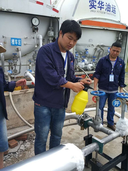 安全運營部熊經(jīng)理將參與演練的所有人員分成三個小組,進行泄漏模擬演練。演練假設為當班人員在巡檢時,發(fā)現(xiàn)漏氣點,第一時間上報站長,并對泄漏點進行模擬搶修。當班人員關閉漏氣點上下游的球閥,并通過散管進行放散,排空設備和管線內(nèi)的天然氣,再對泄漏處進行排查修復。處理泄漏點后,恢復正常生產(chǎn),再對現(xiàn)漏點進行仔細的檢漏,確保無漏點。在這次模擬修復中,增強了同事之間的協(xié)同默契,也加強了全員使用搶修工具的熟練度。