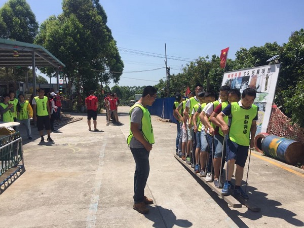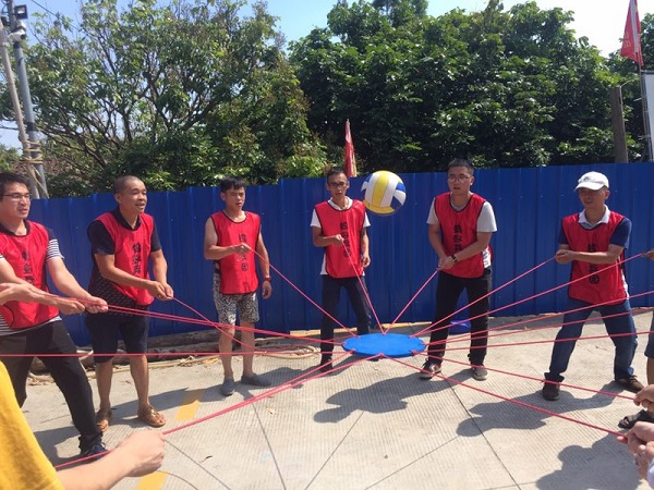 團(tuán)隊(duì)在當(dāng)天上午9點(diǎn)半左右到達(dá)目的地,經(jīng)過(guò)短暫的休息后,進(jìn)行了分組團(tuán)隊(duì)建設(shè)及熱身小活動(dòng)。緊接著,作為活動(dòng)的第一個(gè)項(xiàng)目“無(wú)軌列車(chē)”隆重登場(chǎng)了,本項(xiàng)目要求團(tuán)隊(duì)成員雙腳分別站在兩塊長(zhǎng)約5~8米,安裝有10個(gè)提繩的長(zhǎng)條木板上并手握提繩,行走一定的距離。由于剛開(kāi)始大家沒(méi)有找到項(xiàng)目的技巧,舉步難行,兩隊(duì)都是東倒西歪,經(jīng)過(guò)磨合溝通后,最終順利地完成了比賽。該項(xiàng)目提升了團(tuán)隊(duì)激情及凝聚力。
