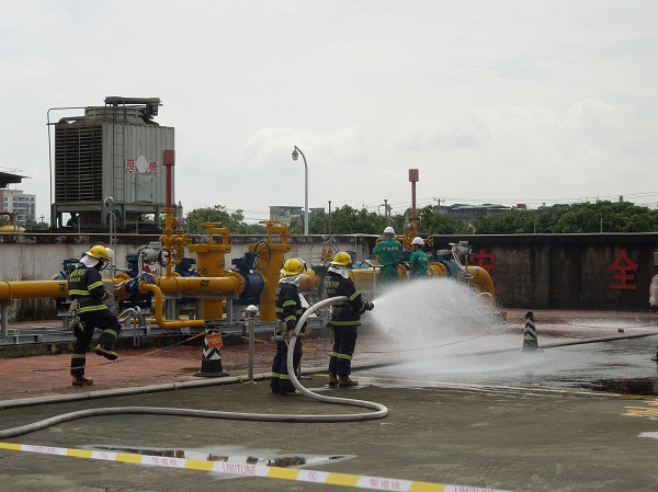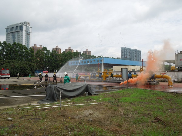 當(dāng)天上午9時(shí)許,由演練總指揮副總裁黃劍鋒正式下達(dá)演練指令,演習(xí)的內(nèi)容為荔園站遭到恐怖襲擊,調(diào)壓站設(shè)備壓力表遭到破壞,出現(xiàn)泄漏,被荔園站保安和員工發(fā)現(xiàn)并及時(shí)控制,封鎖現(xiàn)場啟動(dòng)應(yīng)急機(jī)制。隨后,場站人員及消防部門通過向泄漏處噴灑消防水降低現(xiàn)場天然氣濃度,搶險(xiǎn)組到場后對(duì)受損管線進(jìn)行切換,保證天然氣正常供給,并更換受損儀表,上午10時(shí)順利搶修完畢并恢復(fù)使用。