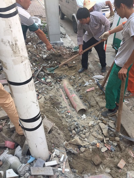 2017年7月15日上午8點39分,曠遠能源管網(wǎng)部巡線員謝海陽在對華林工業(yè)園區(qū)支四路巡線過程中,發(fā)現(xiàn)空氣中彌漫著一股臭味,多年從業(yè)經(jīng)驗使他立刻引起警覺,通過手持式可燃氣體檢漏儀確定了該區(qū)段存在燃氣泄漏。他立即對現(xiàn)場進行警戒,并及時上報管網(wǎng)部經(jīng)理林元琦。林元琦考慮事故隱患重大,影響范圍廣,立即上報公司領導并啟動應急預案。曠遠能源客服部、調(diào)度監(jiān)控中心、工程管理中心、宏盛市政工程有限公司等多方迅速聯(lián)動。管網(wǎng)部經(jīng)理林元琦第一時間組織力量趕赴現(xiàn)場處理,他憑借多年的管網(wǎng)應急處理經(jīng)驗,迅速鎖定漏氣區(qū)段,通過取點檢測分析,準確地找出了管線漏點。頂著烈日冒著酷暑,為了及時恢復供氣,曠遠能源管網(wǎng)部和宏盛市政的應急搶修人員爭分奪秒進行搶修。當天下午17點18分,更換管段焊接完畢;17點58分,冷卻側漏后恢復供氣。