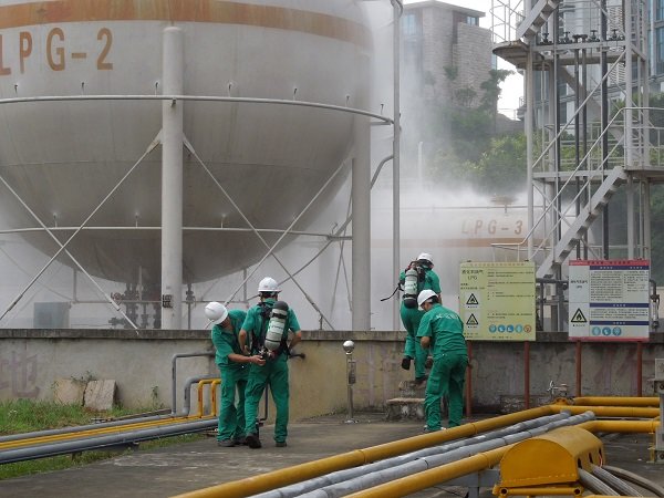 2014年6月18日下午15:30,曠遠(yuǎn)能源股份有限公司在生產(chǎn)部氣源廠開展關(guān)于LPG儲罐法蘭泄漏應(yīng)急處理演練。