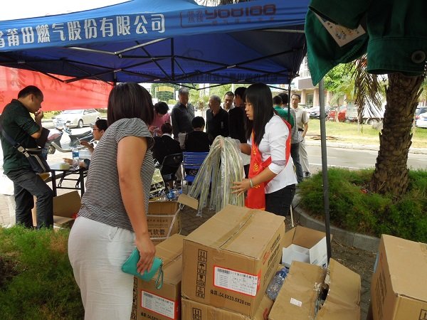 為響應(yīng)公司提出的加強燃氣安全常識傳播力度,積極開展安全宣傳活動,密切聯(lián)系客戶的號召,曠遠能源客服部于2014年10月25日組織部分員工在漢庭花園內(nèi),開展主題為“膠管幫您換,氣表送家中”的活動。