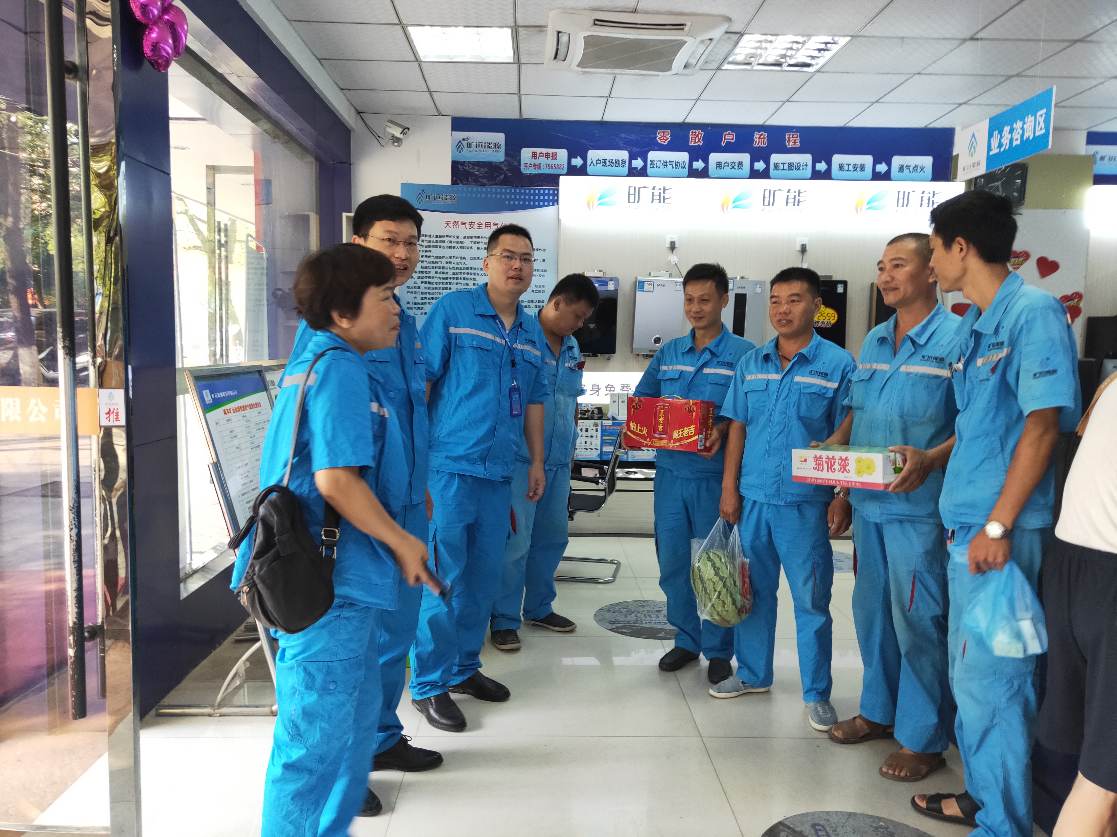 連日來,氣溫節(jié)節(jié)攀升,酷暑考驗(yàn)著堅(jiān)守在一線工作的員工。7月24日下午,上杭曠遠(yuǎn)能源有限公司總經(jīng)理郭明亮、副總經(jīng)理姚東亮等一行來到上杭營業(yè)廳、氣站、施工現(xiàn)場等,親切看望慰問我司一線員工,詢問他們在高溫天氣下的工作情況,并代表集團(tuán)公司對一線員工高溫下堅(jiān)守崗位、辛勤勞作的精神表示感謝,叮囑員工在當(dāng)前持續(xù)高溫的不利條件下,安全做好工作的同時(shí),要注意休息、勞逸結(jié)合,采取有效的防暑措施、安全順利..